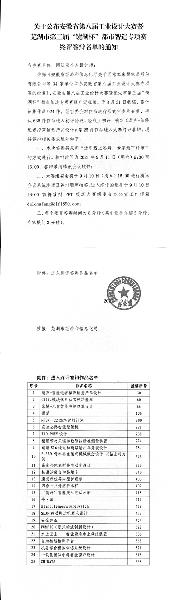 關(guān)于公布安徽省工業(yè)設(shè)計(jì)大賽“鏡湖杯”專項(xiàng)賽終評(píng)答辯名單的通知