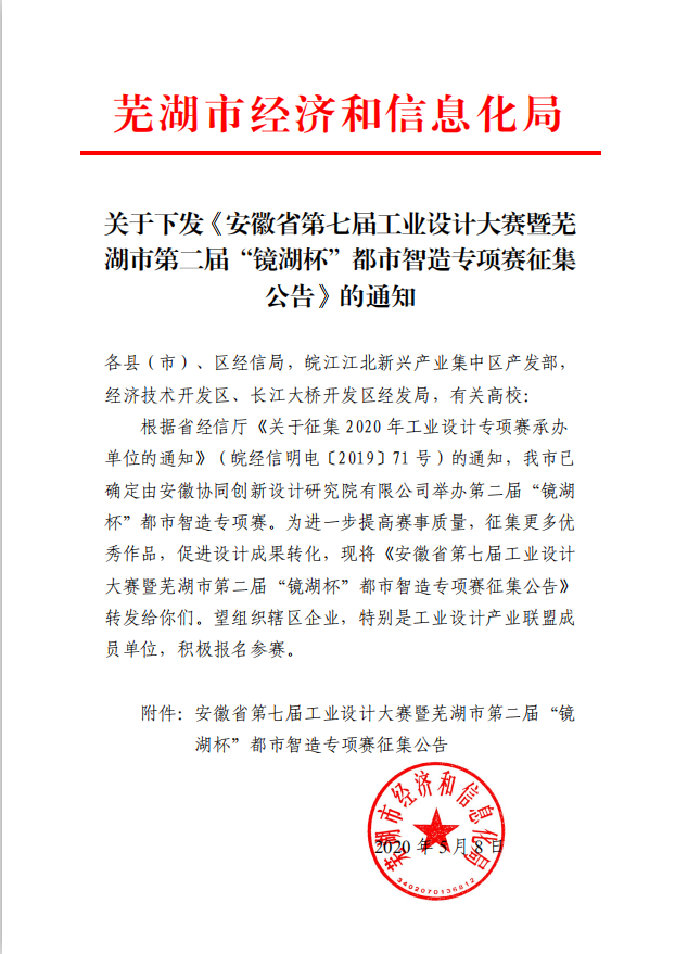 為進一步加快蕪湖市現代制造產業(yè)的升級轉型,加速工業(yè)設計與制造的融合,培養(yǎng)工業(yè)設計人才,決定舉辦安徽省第七屆工業(yè)設計大賽暨蕪湖市第二屆“鏡湖杯”都市智造專項賽。