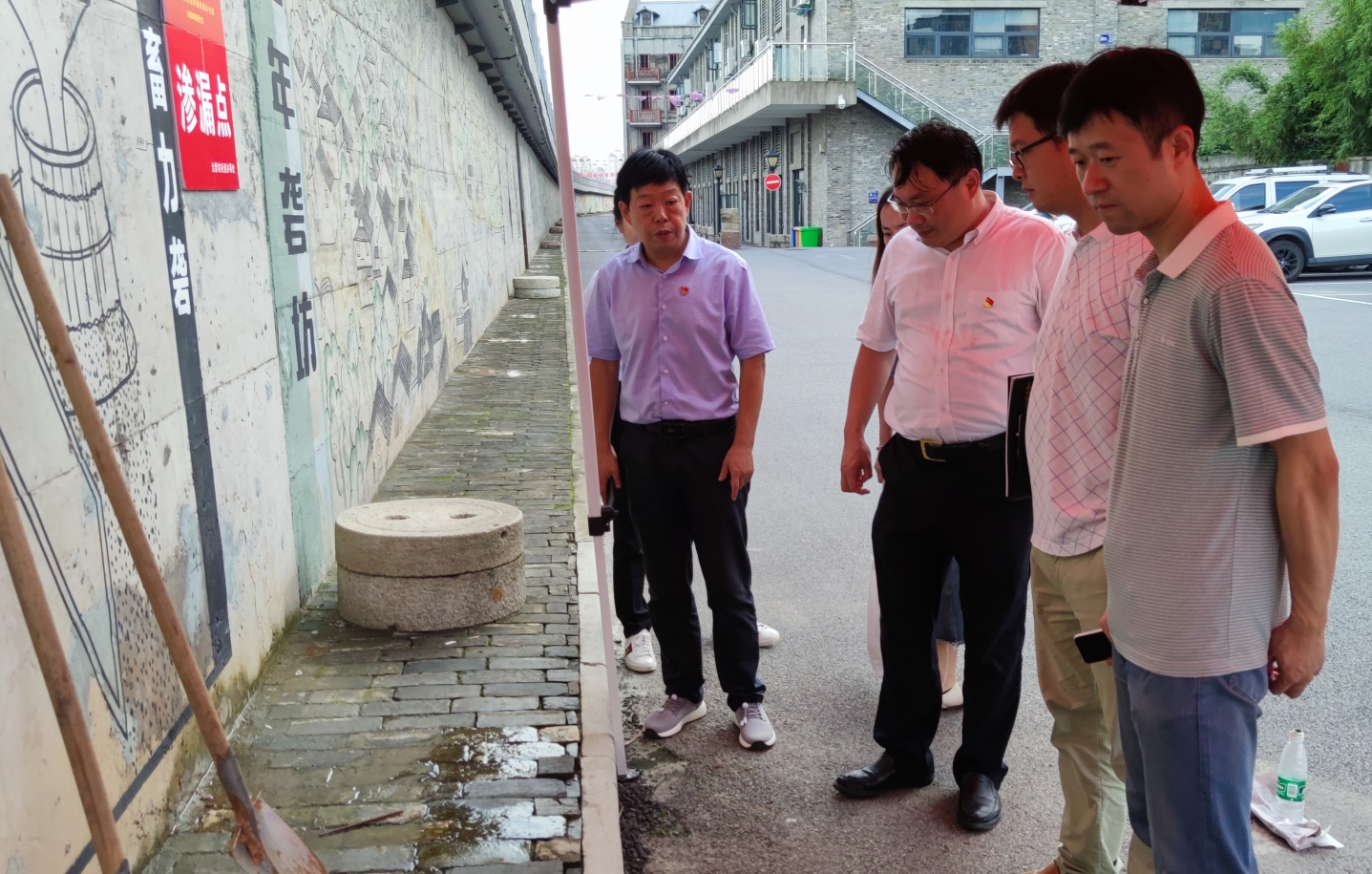 最后,調研組一行來到園區(qū)防洪墻向防汛值守人員表示慰問。