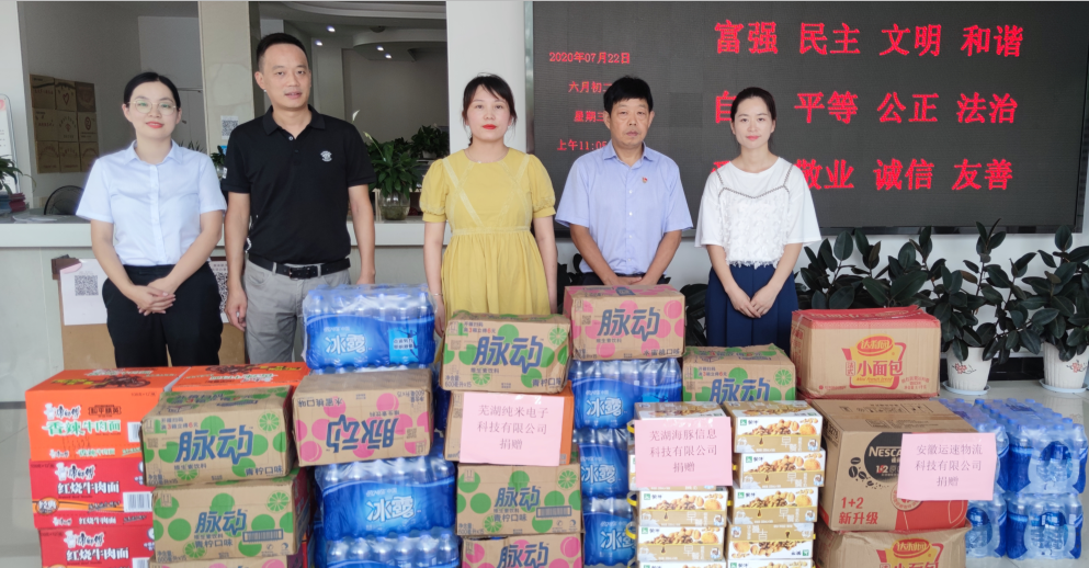 隨著汛情加重,7月22日,園區(qū)繼7月16日組織7家企業(yè)開展愛心捐贈后再次組織純米科技、海豚科技、運速物流3家企業(yè)向大礱坊街道捐獻共計50余件的保障物資。同日,在市科技局的帶領下,安徽礱坊科技發(fā)展有限公司副總經理卞國琛代表園區(qū)前往無為市泉塘鎮(zhèn)泉塘社區(qū)進行脫貧攻堅和抗洪防汛捐款慰問,貢獻一份力量。