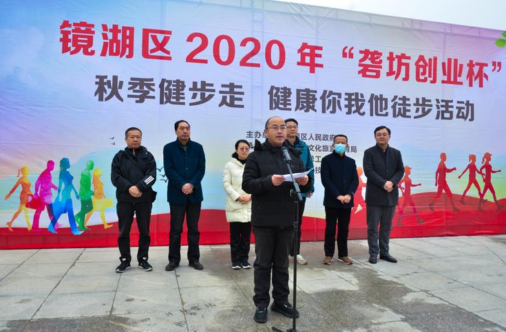 為落實(shí)鏡湖區(qū)2020年"健康鏡湖"全民健身活動(dòng)計(jì)劃,提高全民參與科學(xué)健身的意識(shí),12月3日,由鏡湖區(qū)人民政府主辦,區(qū)文化旅游體育局、區(qū)總工會(huì)承辦,大礱坊科技文化園協(xié)辦的2020年"礱坊創(chuàng)業(yè)杯"秋季健步走、健康你我他徒步活動(dòng)在汀棠公園隆重舉行。區(qū)四大班子領(lǐng)導(dǎo)靳立剛、陳娟娟、王建明、朱光友、章建華,市體育局二級(jí)調(diào)研員江思紅等市、區(qū)領(lǐng)導(dǎo),園區(qū)負(fù)責(zé)人卞國琛等出席開幕式。
